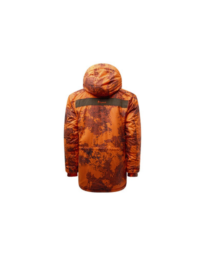 Dłuższa kurtka myśliwska z dodatkowym ociepleniem i wiatro - i wodoodporną membraną. W poszewce została zastosowana najnowsza technologia Pinewood Ultra Body-Heat, która maksymalizuje komfort tego ubrania. Metaliczny panel na podszewce odbija ciepło ciała, zapewniając dodatkowe ciepło. Wygodne kieszenie do ogrzania dłoni z polarową podszewką, obszerne kieszenie przednie z napami magnetycznymi oraz kieszeń na radio po obu stronach. Dwukierunkowy suwak i magnetyczne napy w plisie przykrywającej główny suwak z przodu. Regulowana talia, dół kurtki i kaptur za pomocą ściągaczy. Mankiety rękawów z zapięciem na rzep. Odpinany kaptur ze wzmocnionym daszkiem.