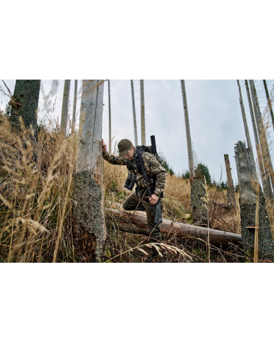 Kurtka Harkila Kamko Mountain WSP to wszechstronny model z serii Mountain Hunter Expedition, zaprojektowany z myślą o wymagających użytkownikach poruszających się w trudnym terenie. Jej dwustronna konstrukcja umożliwia szybkie dopasowanie do środowiska – po jednej stronie znajduje się nowoczesny kamuflaż AXIS MSP® Mountain, po drugiej – stonowany odcień Shadow Brown. To rozwiązanie sprawia, że bluza sprawdzi się zarówno podczas aktywnego podchodzenia, jak i w trakcie obserwacji czy przemieszczania się po otwartym terenie. Materiał zewnętrzny to wysokiej jakości polar wyposażony w membranę WINDSTOPPER® by GORE-TEX, która zatrzymuje wiatr, nie ograniczając oddychalności. Całość jest rozciągliwa i cicha, co przekłada się na swobodę ruchu i skuteczność podczas skradania się. Bluza została wyposażona w szereg praktycznych detali: podwójne kieszenie na radio, kieszeń na rękawie, kieszenie boczne oraz otwory na kciuki, które stabilizują rękawy i poprawiają komfort użytkowania w chłodniejsze dni.